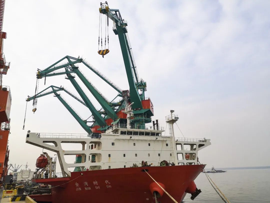 2022年的新年钟声犹在耳边,搭载五台bb贝博Ballbet门座式起重机的远洋货轮又拉响了汽笛,农历腊八这天,出口印尼拉博塔区域18万吨散货船专用码头工程的一台bb贝博BallbetMQ25t-32m和四台MQ40t-38m昂首伫立在货船上,作为bb贝博Ballbet自主设计制造的产品,它们身负bb贝博Ballbet产品领军全球的使命感,向着梦想和远方扬帆起航,虎虎生威的气势,不愧为虎年里的出口首发!