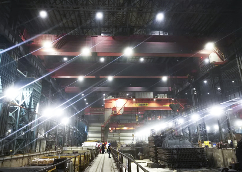 该项目中的bb贝博Ballbet350t铸造起重机整车采用四梁六轨双小车结构,主起升减速机与车架为一体化,整体退火和整体加工的制造工艺保证齿轮、轴承、电机、制动器等的安装精度,使起重机运行更加稳定。